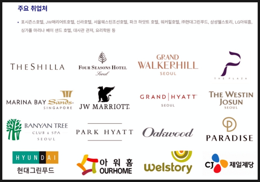 한국관광대학교 의 주요 취업처도 글로벌 호텔과