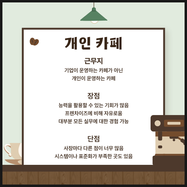카페의 오픈, 커피추출 세팅, 재고관리,