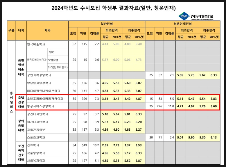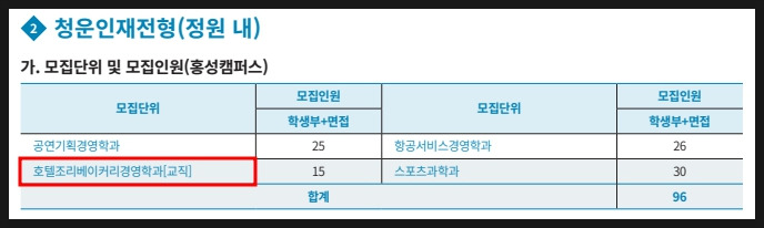 청운대의 호텔조리베이커리경영학과는