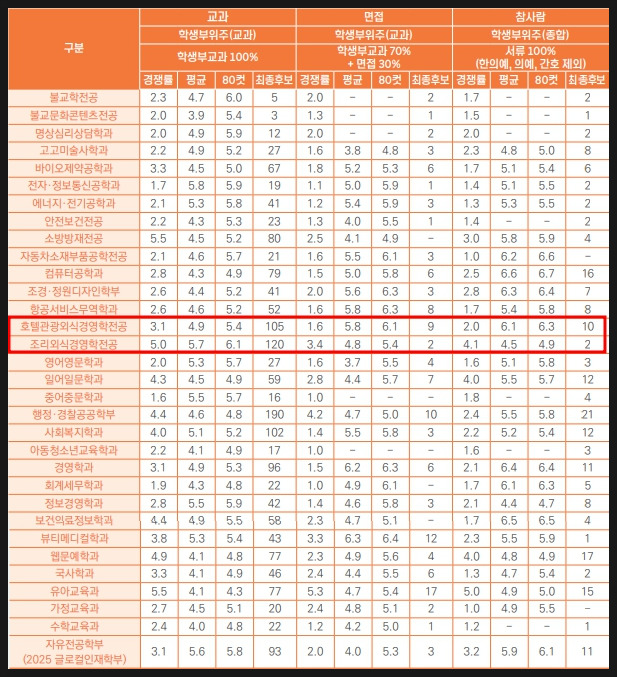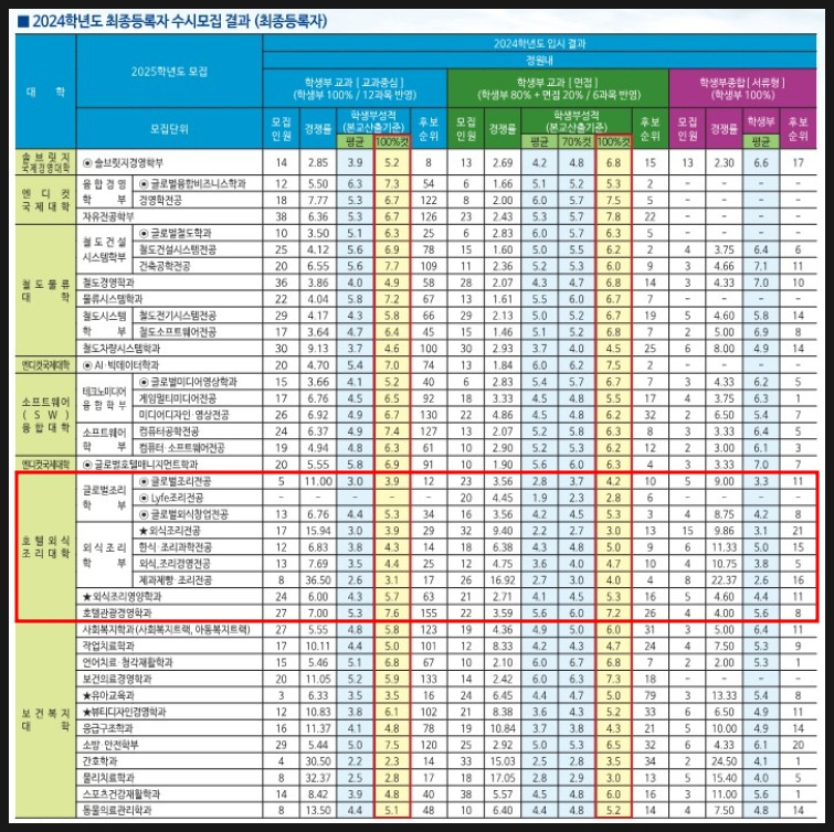 4년제호텔조리학과 희망하는 학생들은