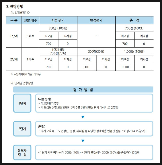 700점이 성적을 보고 300점이 면접인 만큼