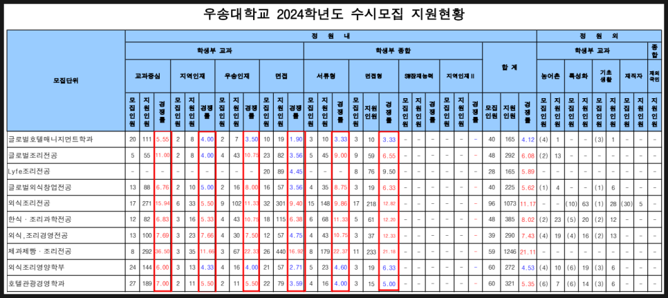 우송대학교의 수시 경쟁률은 6:1~15:1 정도로