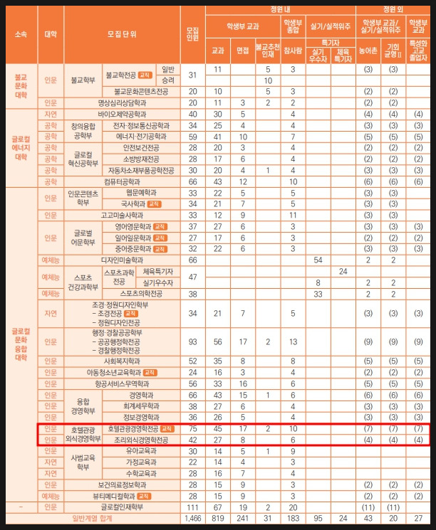 호텔관광경영학전공을 보유한
