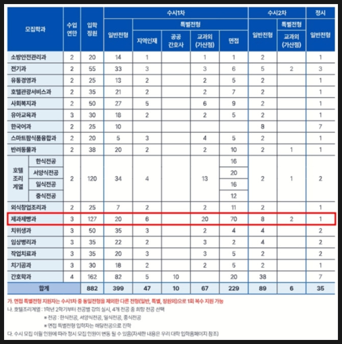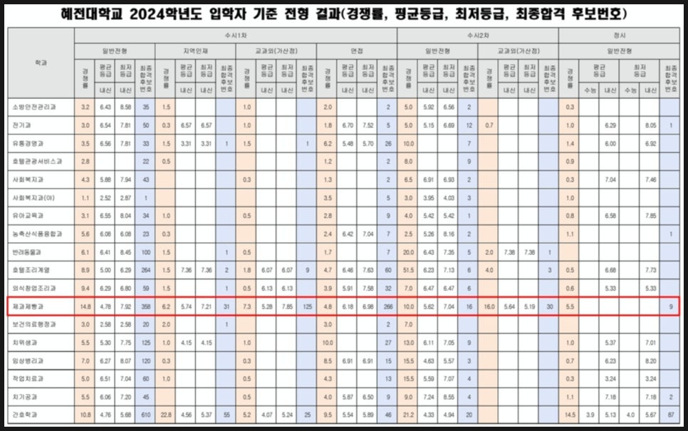 혜전대제과제빵 학과는 전형 총점 1000점 중